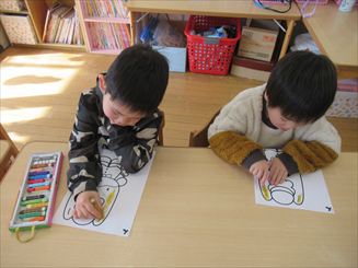 「ぐんまちゃんの色ぬりをしたよ」