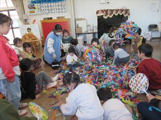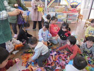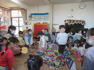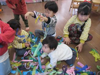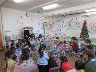 「紙ふぶきでお祝いをしてあげました。ヒラヒラ舞い上がってとてもきれいだったよ」