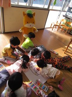 「みんなでぐんまちゃんの色ぬりしました」