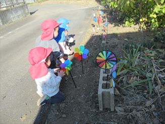 「お散歩で風車、見つけたよ」