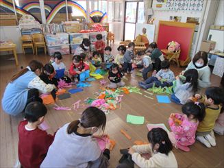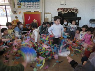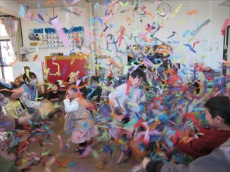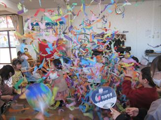 「紙ふぶきでお祝いをしてあげました。ヒラヒラ舞い上がってとてもきれいだったよ」