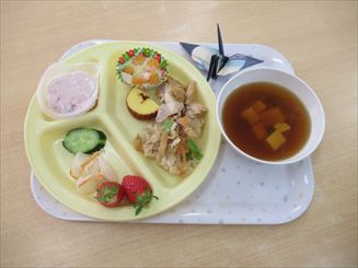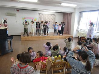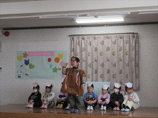 「お兄さん、お姉さんたちが『おおかみと7ひきのこやぎ』の劇をみせてくれました」